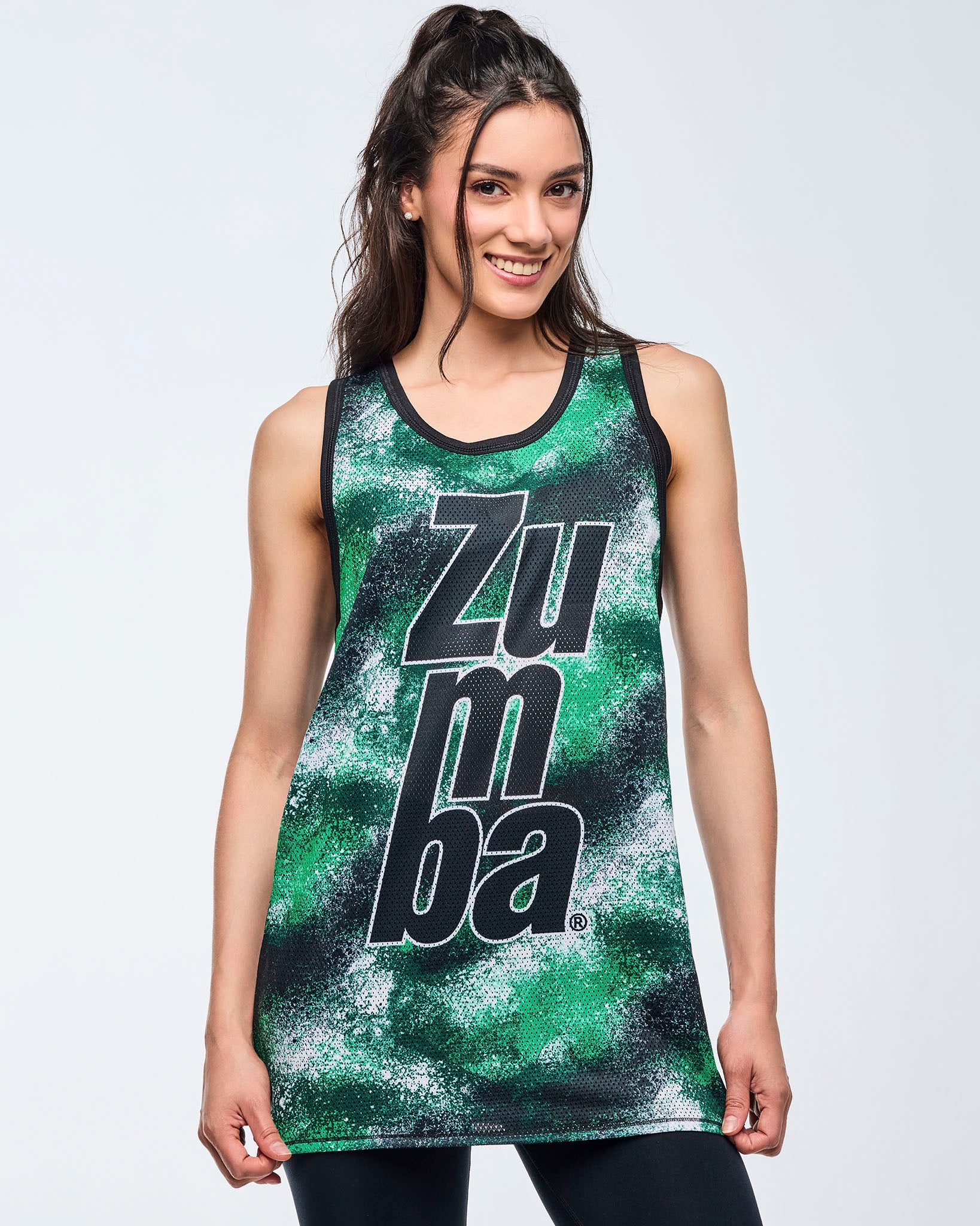 - Color-block diagonal seams and Zumba-exclusive all over printed panels