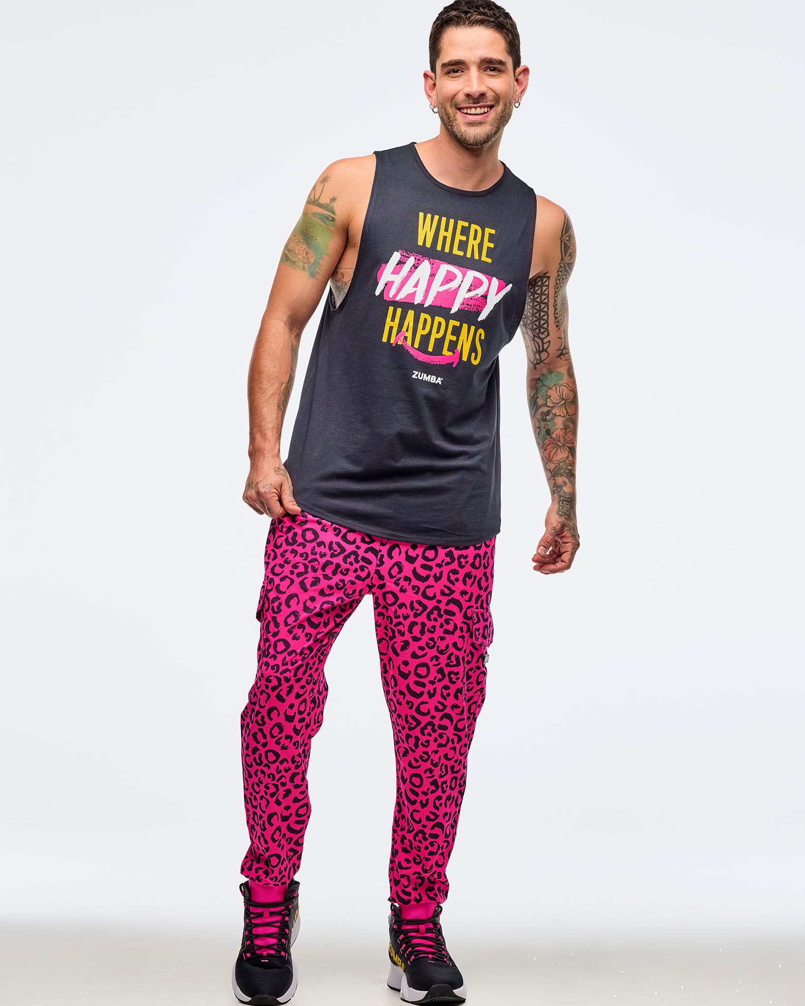 This muscle tank features a rounded hem with side vents for added comfort and style. It showcases an exclusive Zumba graphic on the front and offers a relaxed fit with extended length, perfect for your workout or casual wear.