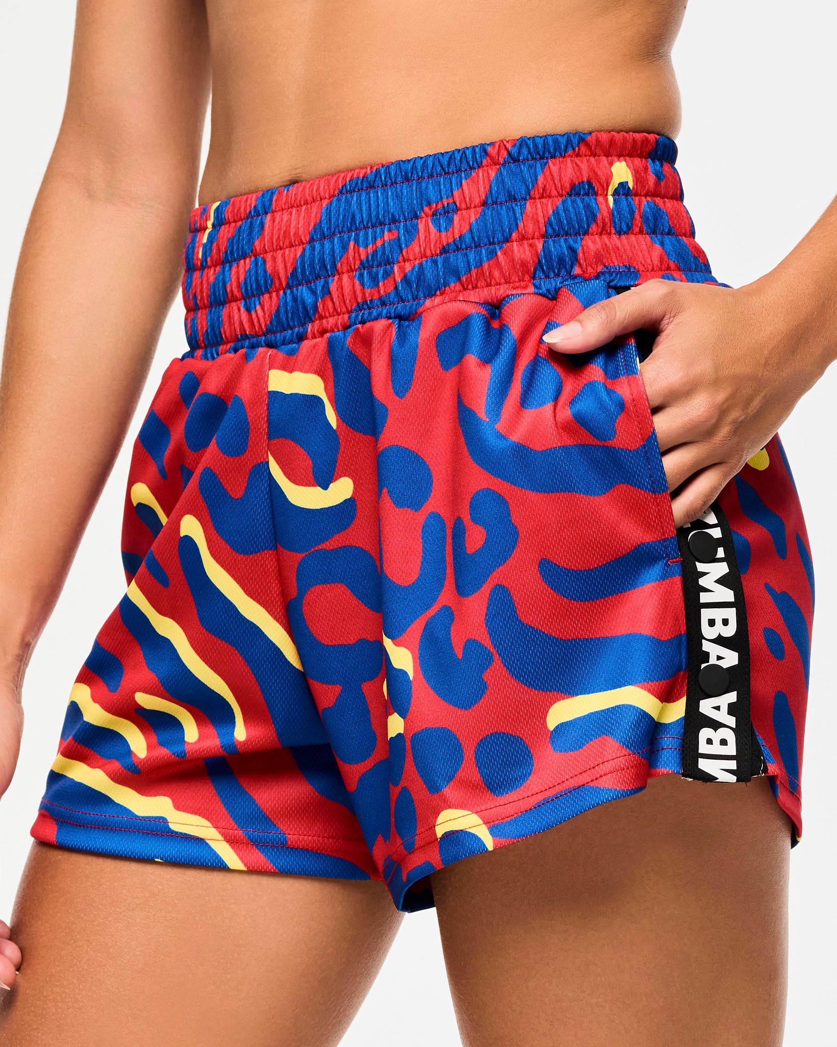 Featuring a wide waistband with internal elastic, side pockets, and a functional side snap placket for added convenience. Our bold Zumba-exclusive all-over print will make you stand out in the ring, while the 3D branded print along the placket adds an extra touch of style. Made from mesh, these shorts offer an easy and comfortable fit, with a short length that allows for full range of motion. Take on your opponents with confidence and style in Victory Mesh Boxing Shorts!