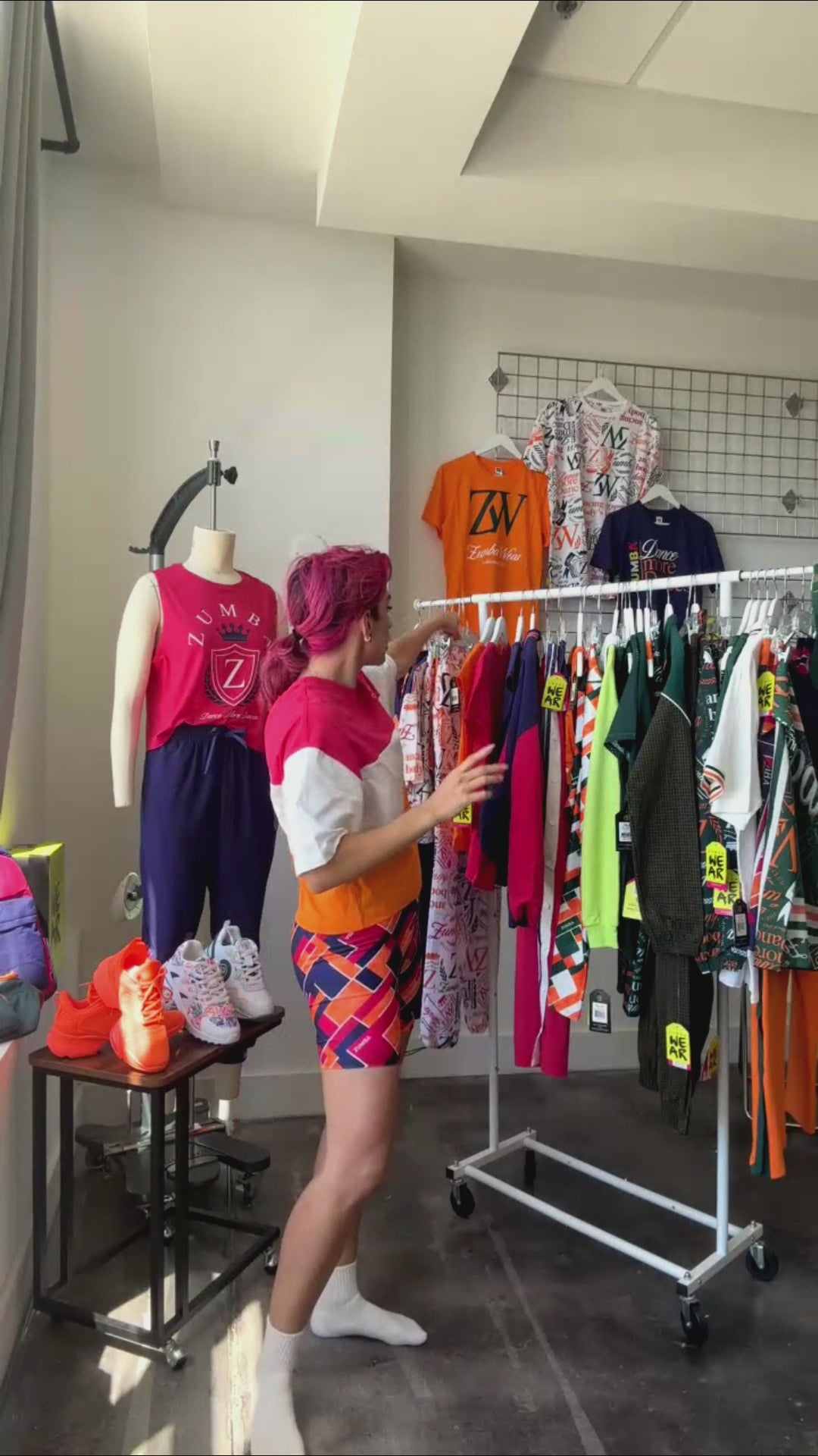 These high-rise cargo pants feature a 31.25" inseam and an encased elastic waistband for added comfort. Adjustable bungee cords at the leg openings ensure a customizable fit, while front patch pockets provide convenient storage. Showcasing a Zumba-exclusive all-over print, they offer an oversized fit and long length for a bold, comfortable look.