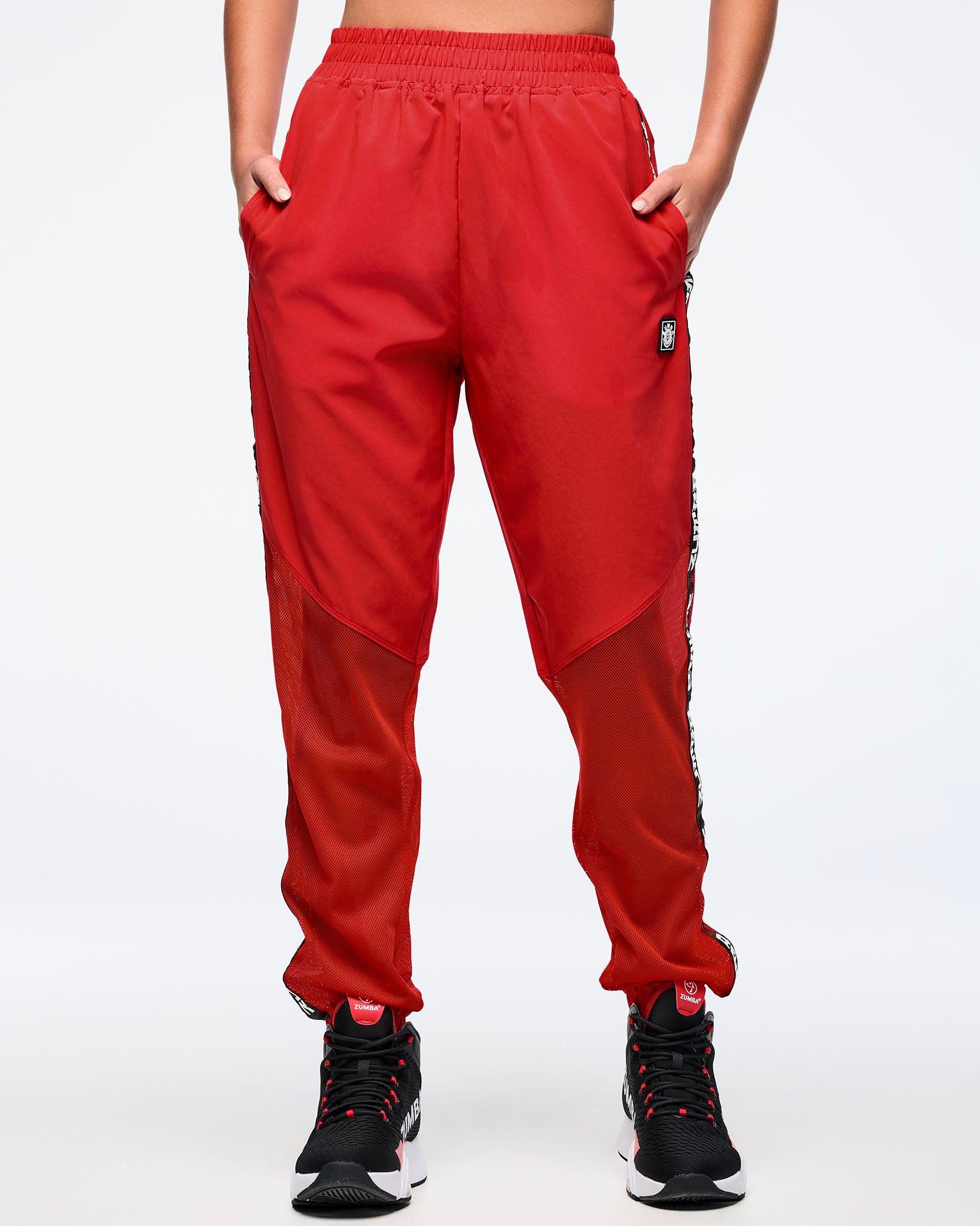 Eastern Flavor High Waisted Woven Track Pants With Mesh