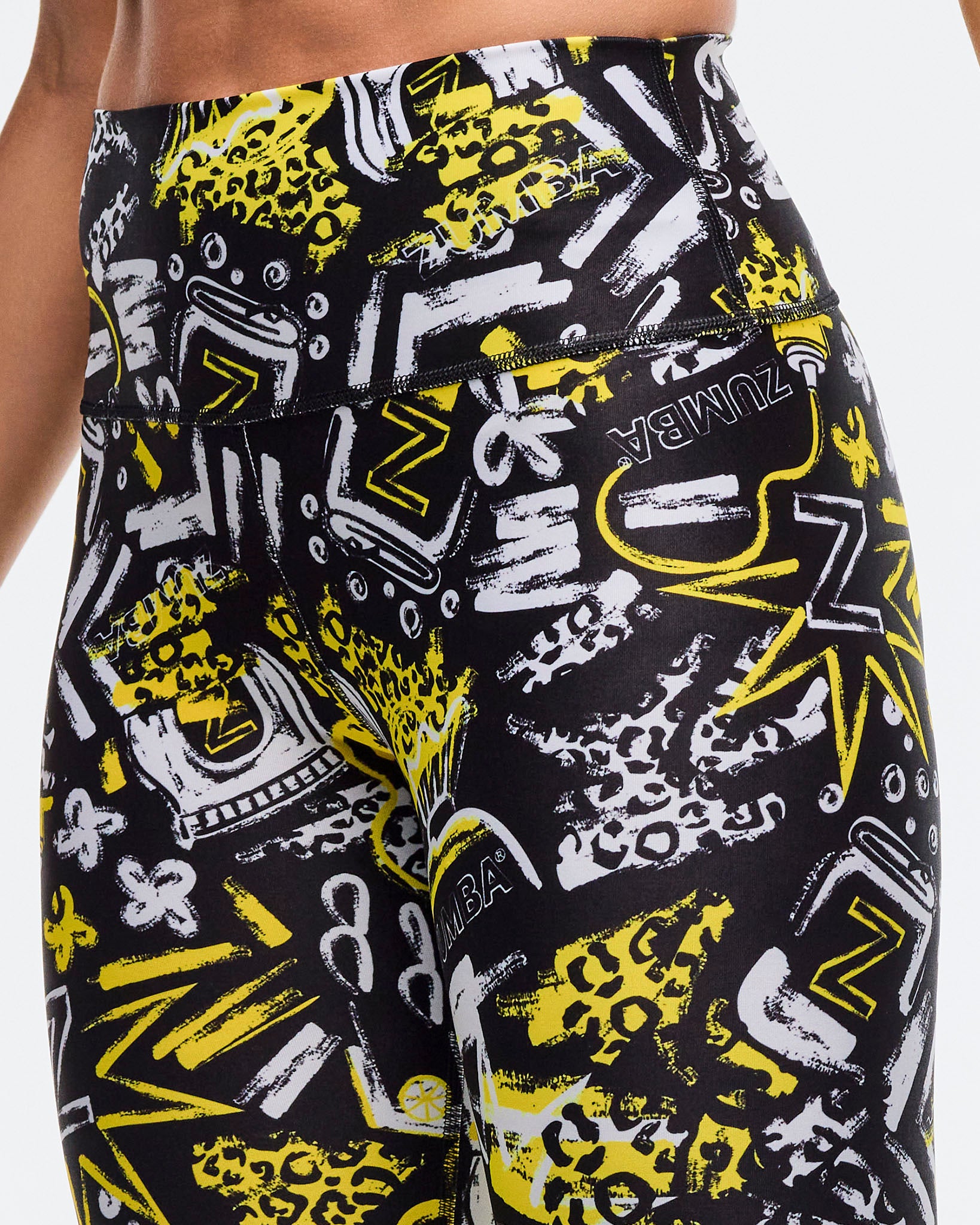 - Zumba Wear branded rubber patch on back waistband