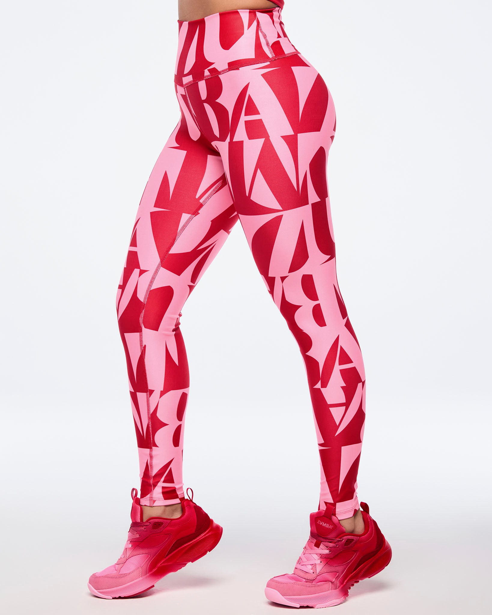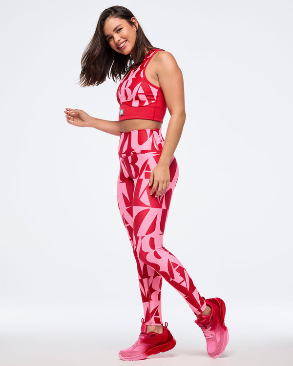 Zumba Haus High Waisted Ankle Leggings - Red/Pink