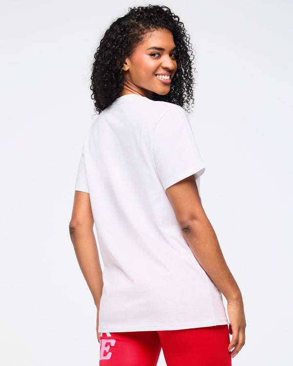 Experience the ultimate comfort and style with our Zumba Love Crew Neck Tee - White. Featuring a rib knit collar and an exclusive graphic print, this unisex tee will surely catch your eye. Made of soft jersey fabric, it offers an easy fit and a long length for maximum comfort. Upgrade your workout wardrobe with this must-have piece now!