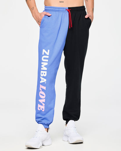 Indulge in instant comfort with this Zumba Love Men's Slouch Sweatpants. The waistband and bottom cuff are encased in elastic, while functional drawcords add a stylish touch. Convenient inseam pockets and a bold Zumba-exclusive graphic print complete the look, all made from cozy big loop French Terry. These sweatpants offer an oversized fit and long length for ultimate comfort and style.
