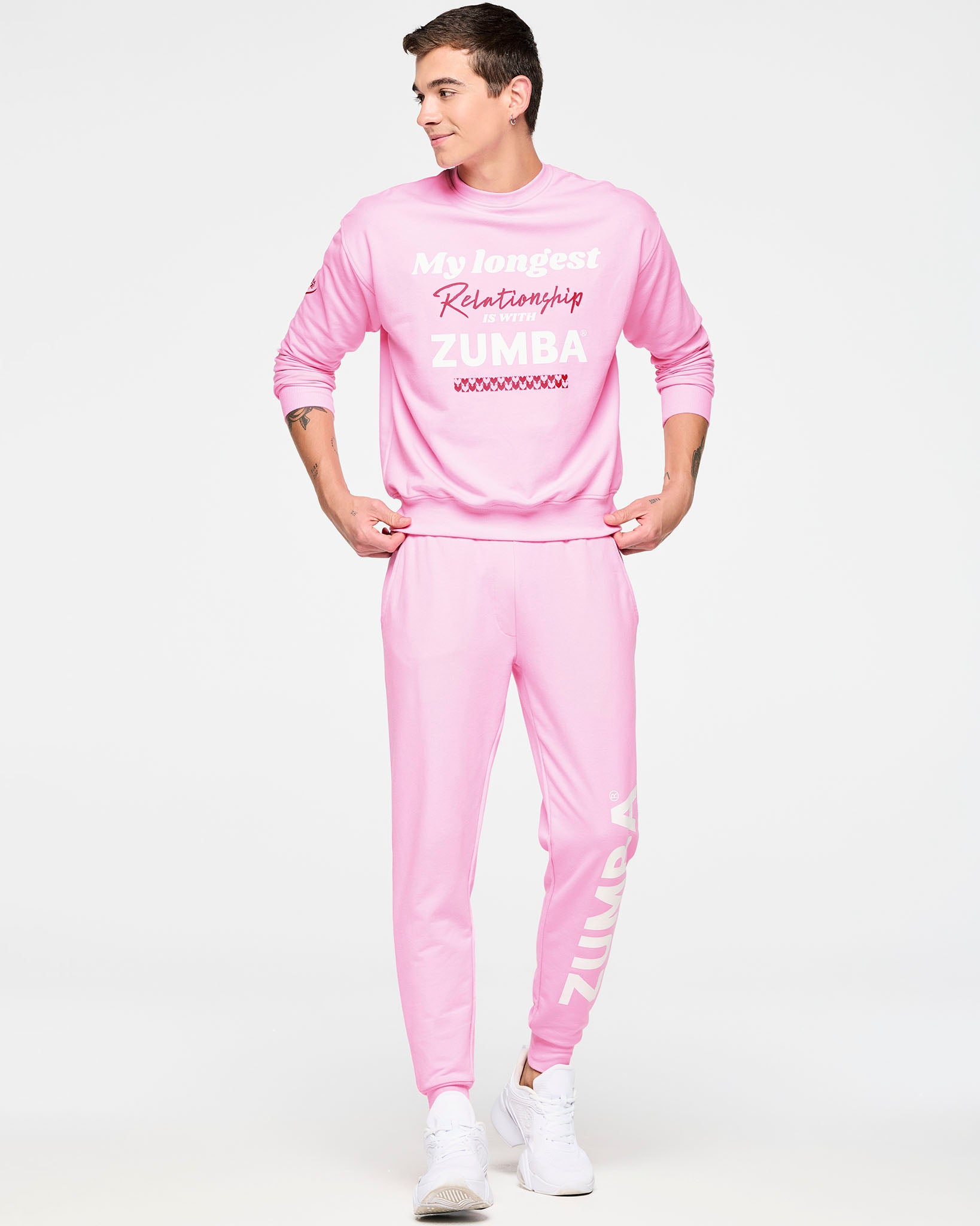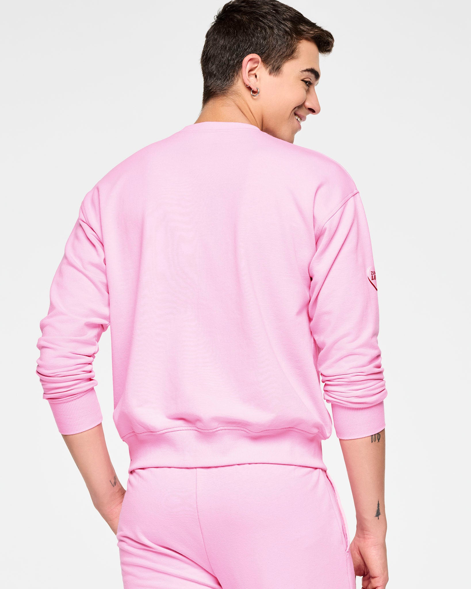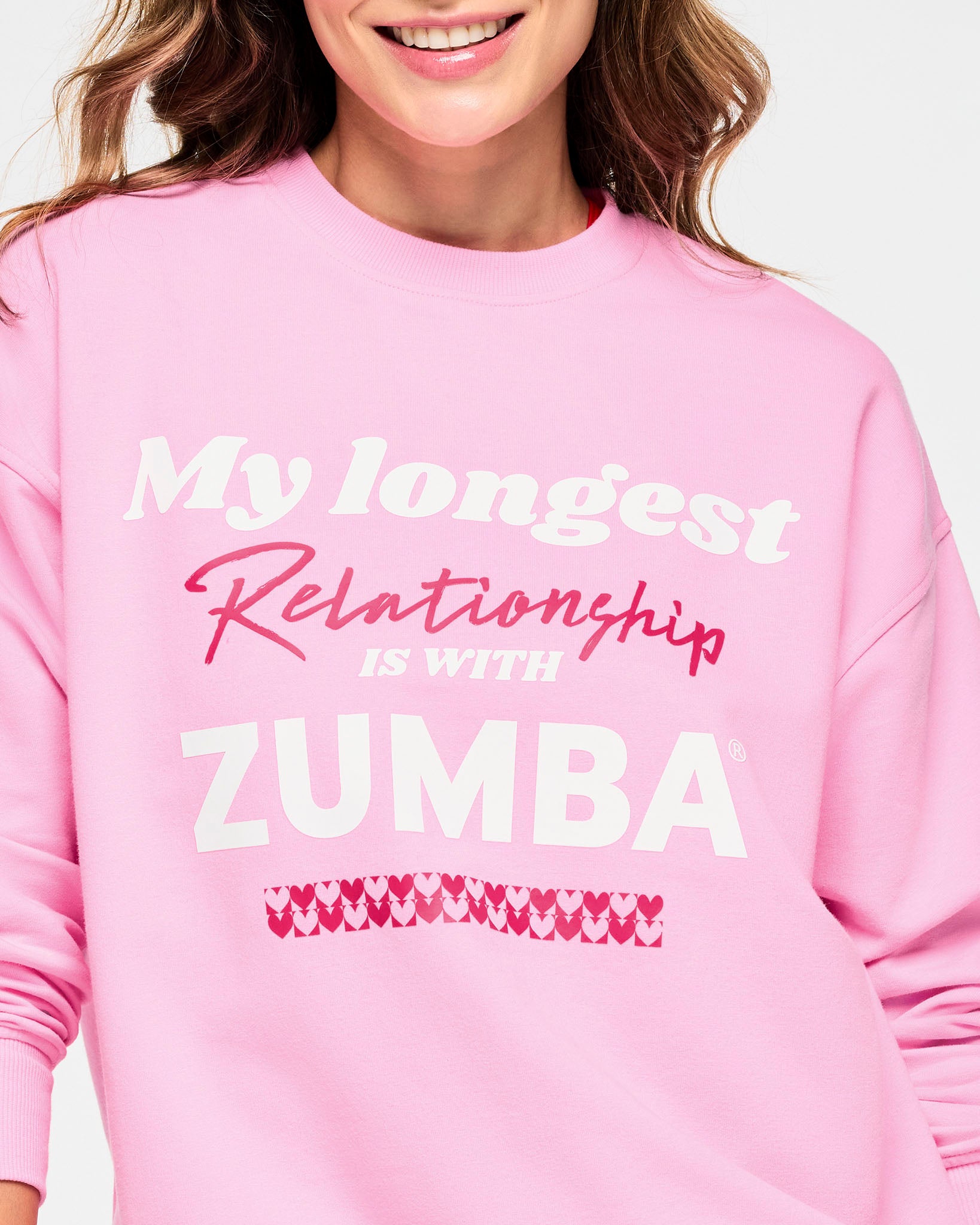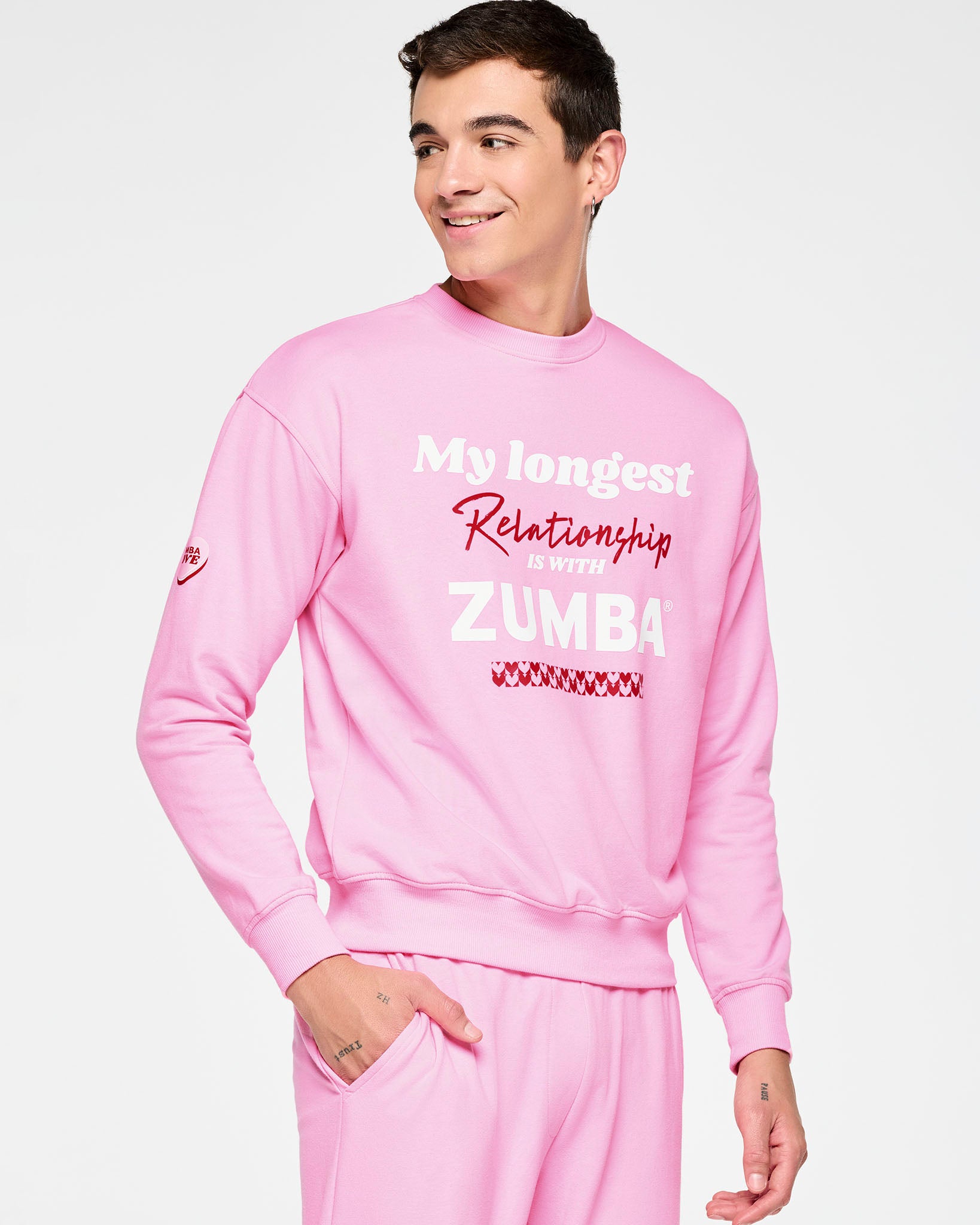 This Zumba Love oversized pullover sweatshirt features a graphic print exclusive to Zumba, along with a rib knit collar, cuffs, and bottom band for added style. Made with a tri-blend French Terry fabric, it offers an oversized fit and a longer length for ultimate comfort and fashion.